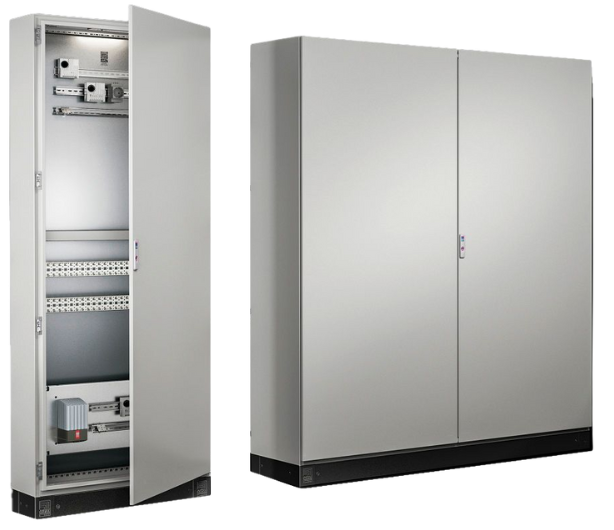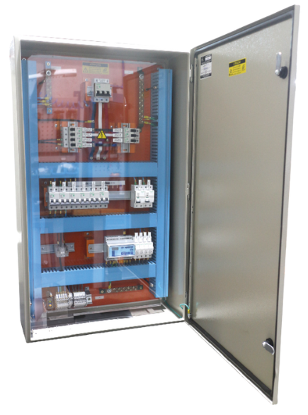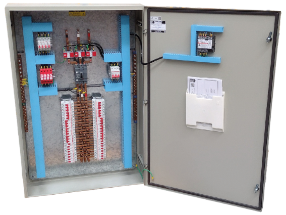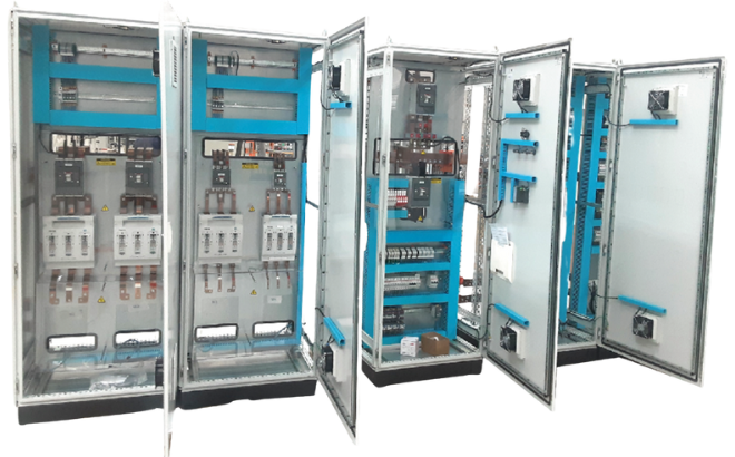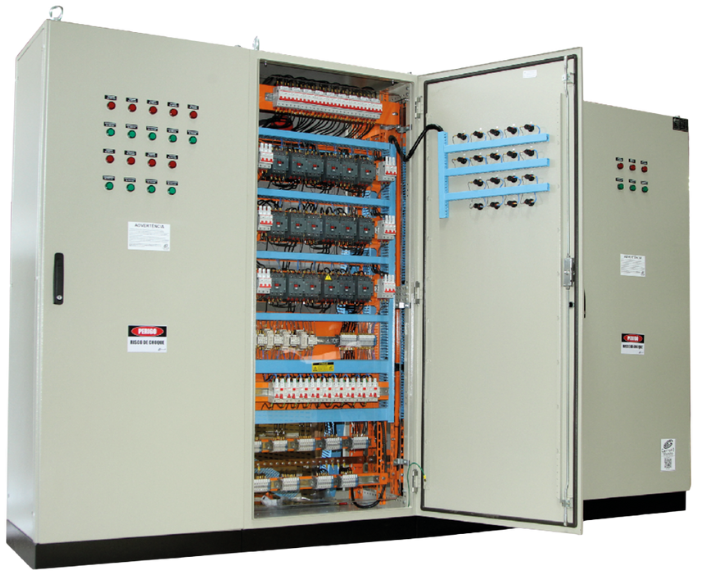 - Painéis de uso interno e externo em chapa galvanizada com pintura eletrostática;