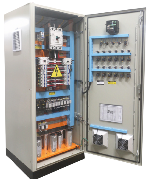 - Células capacitivas trifásicas dispostas em caixas ou cilíndricas;